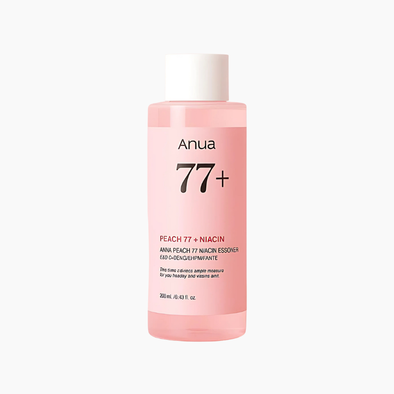 El Peach 77 Niacinamide Essence Toner de Anua es un tónico facial iluminador y equilibrante, formulado con un 77% de extracto de durazno y niacinamida para mejorar la luminosidad, unificar el tono y fortalecer la barrera cutánea. Ideal para piel apagada, sensible o con manchas.